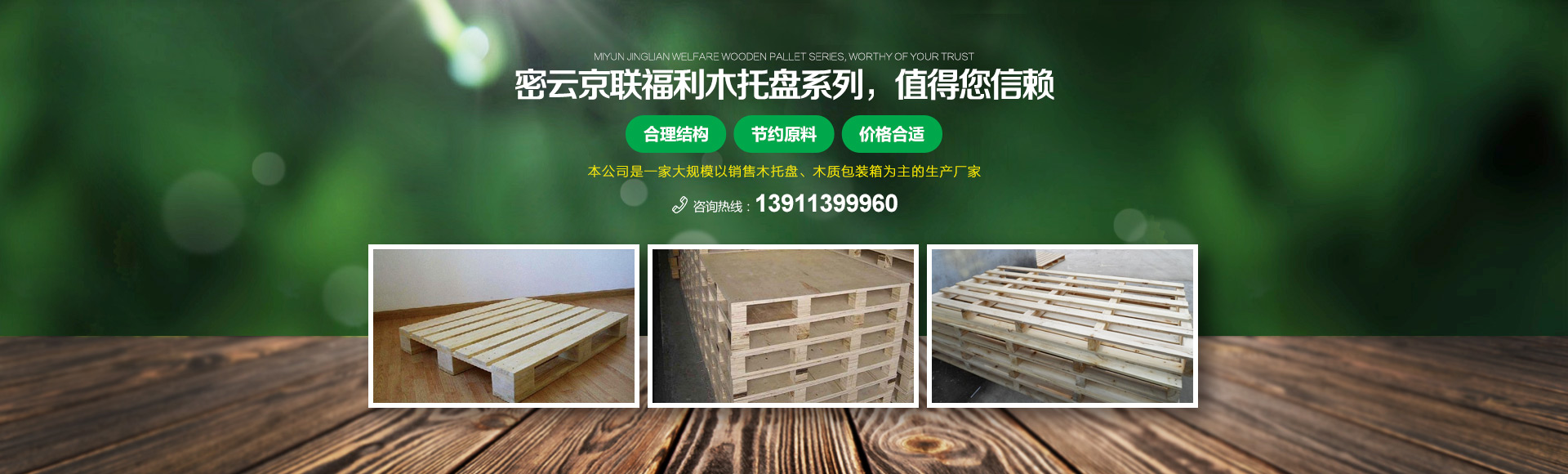 北京京聯(lián)國(guó)順木制品有限公司 (原北京市密云縣京聯(lián)福利木制品廠(chǎng))成立于1993年,位于北京市密云縣西田各莊鎮(zhèn)蒼頭村,占地約5000平米。我公司工廠(chǎng)是一家大規(guī)模以銷(xiāo)售木托盤(pán)為主的生產(chǎn)廠(chǎng)家。本工廠(chǎng)是一家直接采購(gòu)原木,按客戶(hù)要求生產(chǎn)規(guī)格尺寸的托盤(pán),我公司工廠(chǎng)位于河北省承德市有著木材加工點(diǎn),可以做到,從山上的木頭下山到客戶(hù)手中的托盤(pán)都是一手貨,減少了中間商的費(fèi)用,所以我公司售出的產(chǎn)品對(duì)北京這個(gè)龐大的市場(chǎng)來(lái)說(shuō)在同樣的規(guī)格尺寸的托盤(pán)來(lái)說(shuō)價(jià)格比較占優(yōu)勢(shì)。